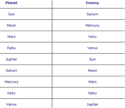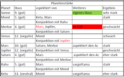 Venus und Merkur haben jeweils zwei schwächende Einflüsse, Jupiter wird lediglich durch die Stellung im 12. Haus behindert.