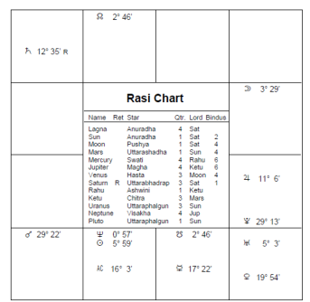 Drei seiner Kinder sind im Merkur Dasha geboren, das 4. in einem Merkur Bukti.